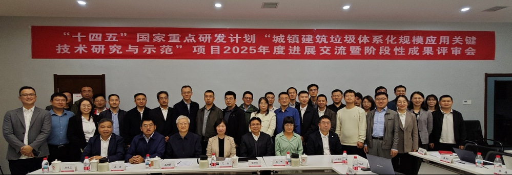 为进一步规范示范工程的实施路径、严格把控成果质量,2025年10月11日,由同济大学牵头的国家“十四五”重点研发计划项目《城镇建筑垃圾体系化规模应用关键技术研究与示范》2025年度项目进展交流会暨阶段性成果评审会在西安顺利召开。本次会议由课题二承担单位——西安墙体材料研究设计院有限公司承办。项目负责人肖建庄教授、各课题负责人及项目骨干等40余人参加了会议(图1)。