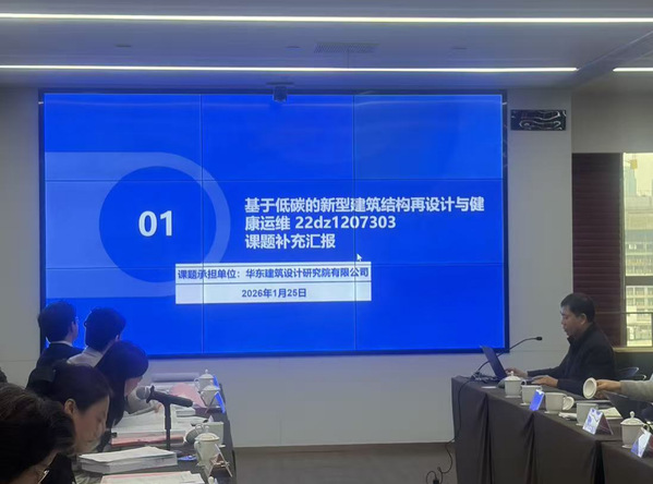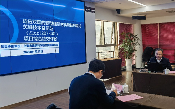 2026年1月25日下午,上海市科学技术委员会在南昌路59号科学会堂,组织了依托上海市建筑科学研究院有限公司、肖建庄教授主持完成的《适应双碳的新型建筑材料和结构型式关键技术及示范》项目综合绩效评价会。市科委相关处室代表、专家委员会成员以及项目(课题)承担单位代表参加了本次会议。项目完成单位上海市建筑科学研究院有限公司、同济大学、华东建筑设计研究院有限公司、上海建工集团股份有限公司等相关代表参加会议。